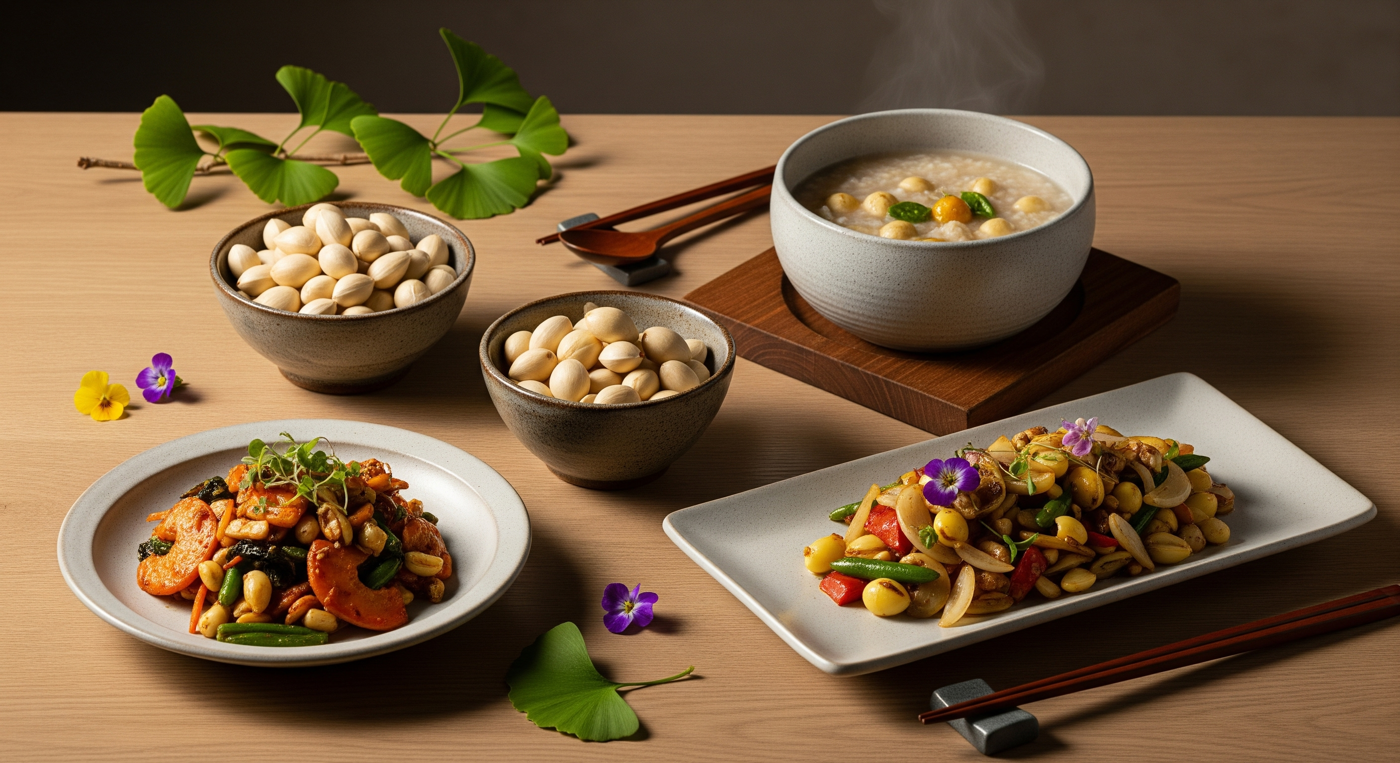 밥을 지을 때 밤, 대추 등과 함께 손질한 은행을 넣으면 쫀득한 식감이 살아있는 영양밥이 됩니다. 갈비찜이나 닭찜 같은 요리에 넣으면 색감도 예쁘고 맛의 조화도 훌륭합니다. 물론 이때도 전체적인 은행 하루 섭취량을 고려하여 양을 조절해야 합니다.