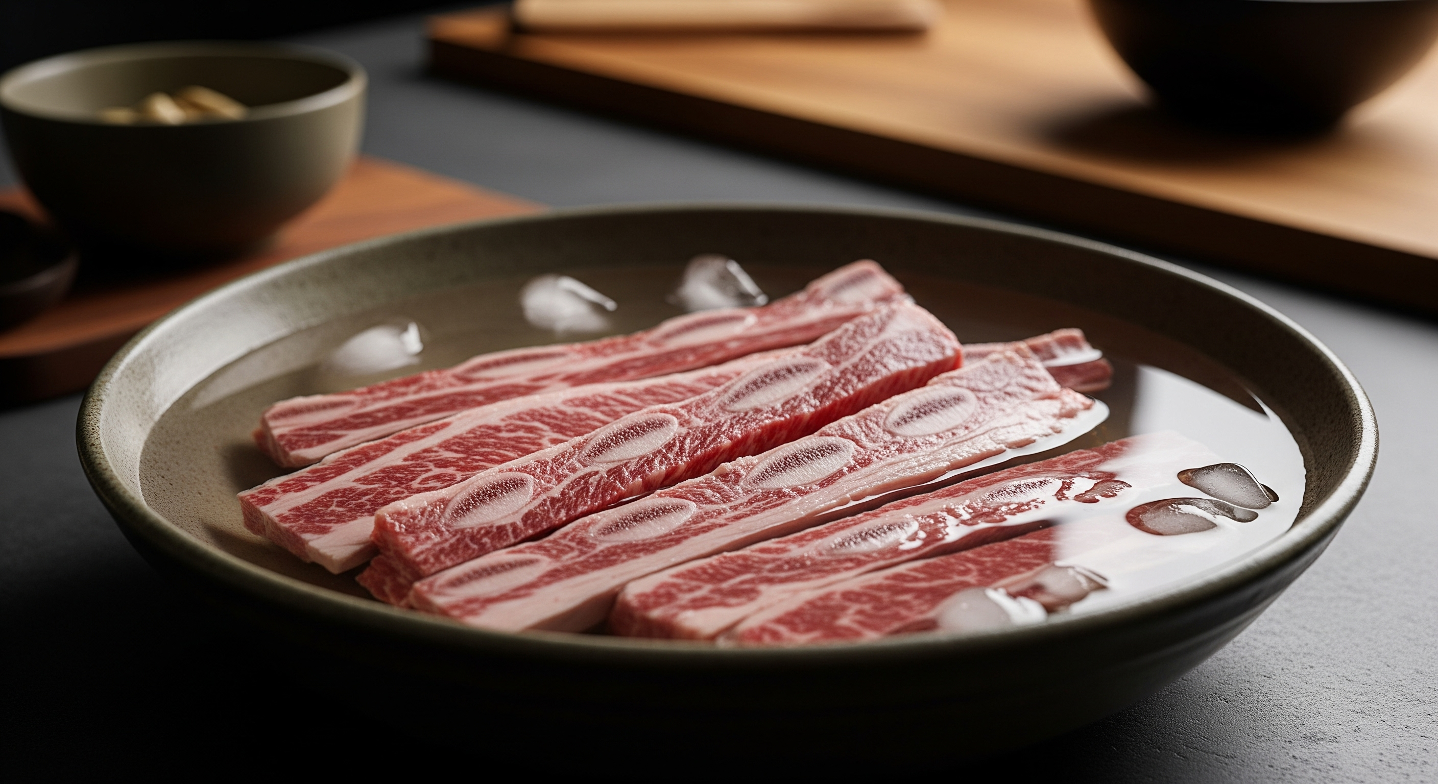맛있는 LA갈비의 가장 기본은 바로 '핏물 제거'입니다. 이 과정을 꼼꼼하게 거쳐야 고기의 누린내나 잡내를 잡고, 양념이 고기에 쏙쏙 잘 배어들어 깔끔하고 깊은 맛을 낼 수 있어요. 귀찮다고 대충 하시면 완성된 요리의 맛에서 큰 차이가 나니, 꼭 신경 써주세요!