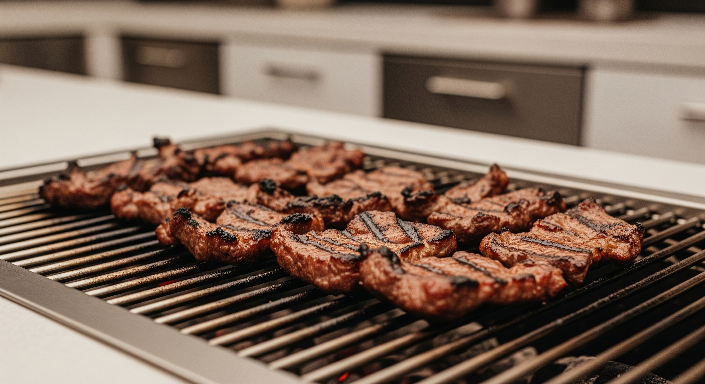 A: 핏물 제거가 제대로 되지 않았거나, 숙성 시간이 부족했을 가능성이 높습니다. 또한, 배나 파인애플 같은 연육 작용을 하는 과일이 부족해도 고기가 질길 수 있습니다. 마지막으로 너무 오래 구우면 수분이 날아가 퍽퍽해지니, 센 불에서 앞뒤로 빠르게 구워 육즙을 가두는 것이 중요합니다.