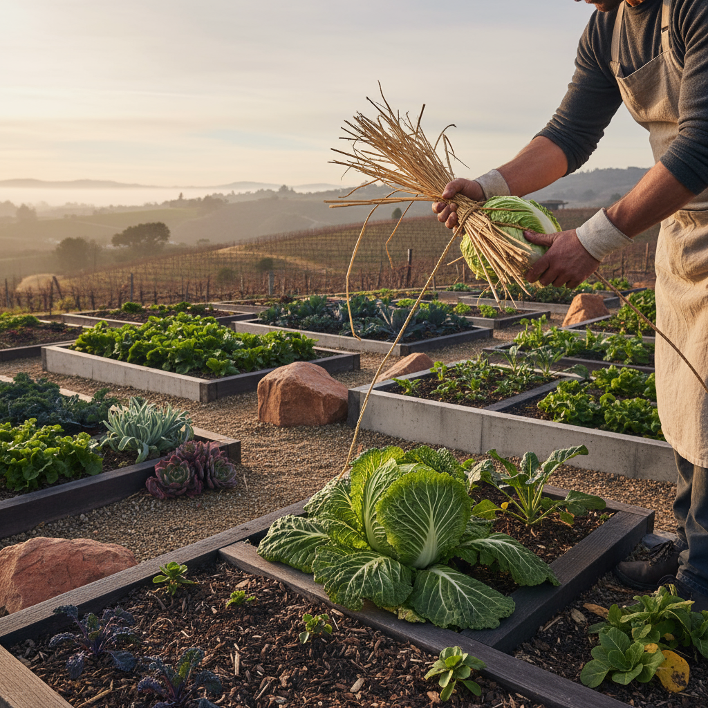 겉잎을 모두 오므려 감싼 뒤, 짚이나 부드러운 끈을 이용해 배추의 3분의 2 지점을 가볍게 묶어줍니다. 너무 꽉 조이면 통풍이 안 되어 속이 물러질 수 있으니, 잎이 벌어지지 않을 정도로만 살짝 묶는 것이 포인트입니다.