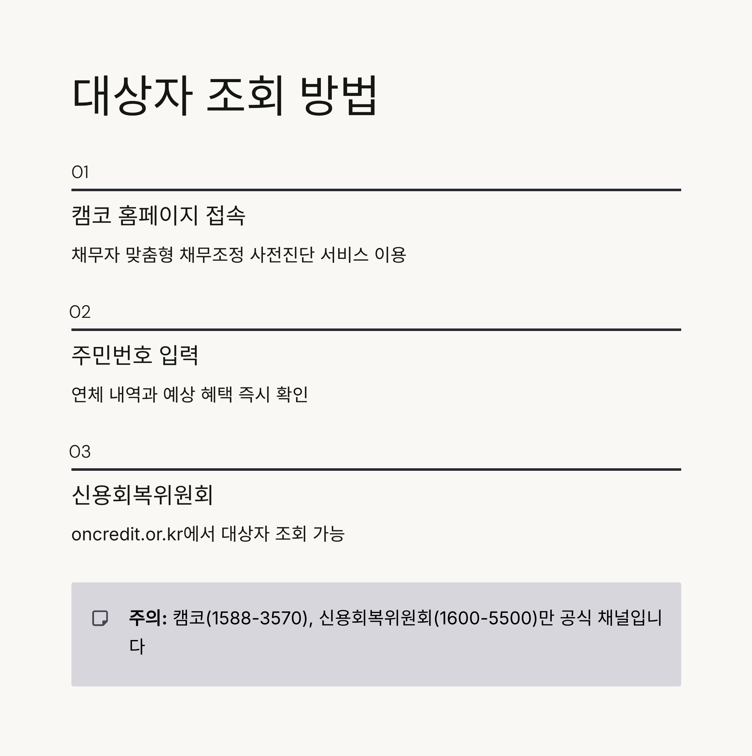 조회하다 보면 이상한 문자나 전화가 올 수 있어요. 공식 채널은 캠코(1588-3570)나 신용회복위원회(1600-5500)뿐이에요. 돈을 요구하거나 개인정보를 요구하는 건 무조건 사기예요. 실제로 최근에 이런 사례가 늘고 있으니, 항상 공식 사이트에서 확인하는 습관을 들이세요.