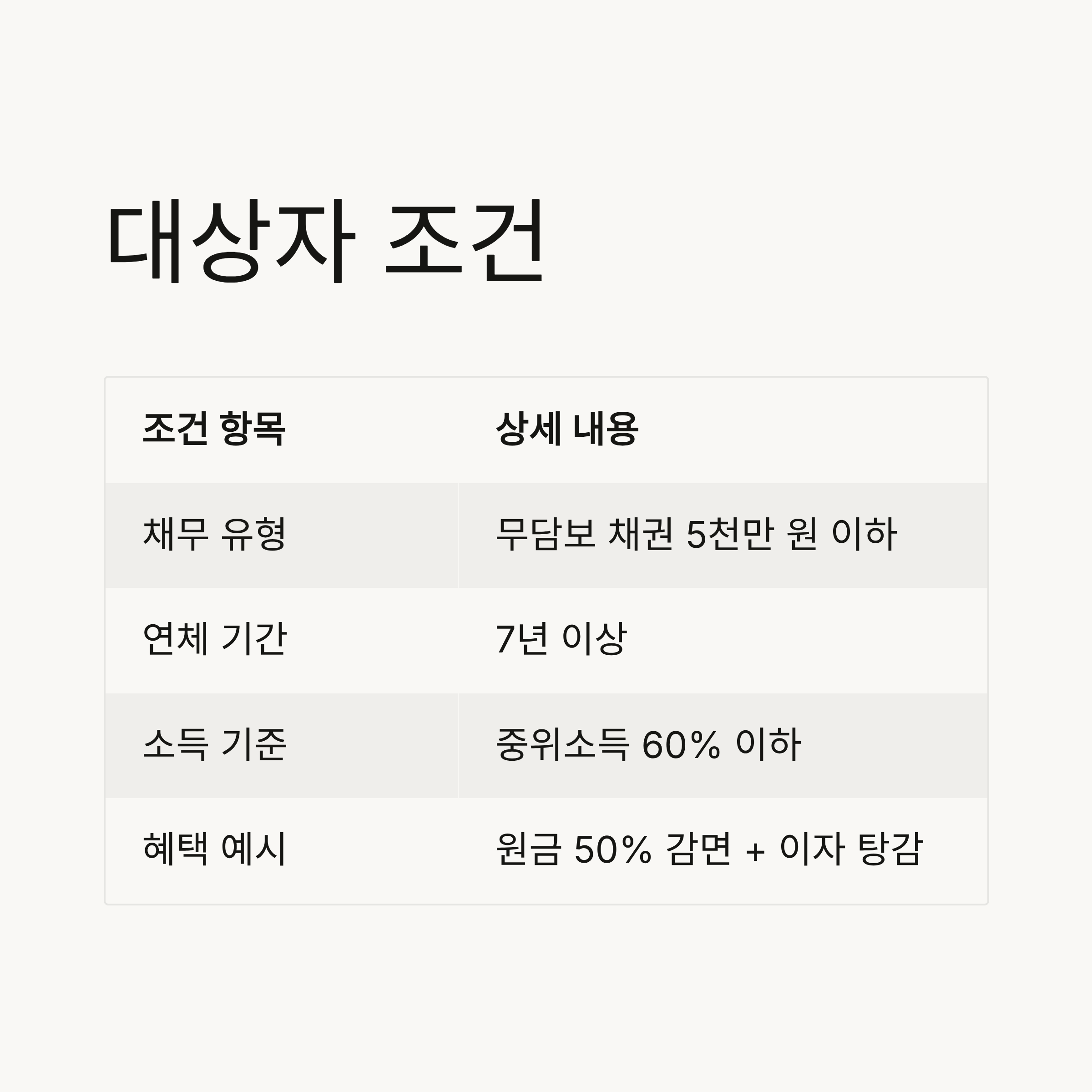 혜택 예시 | 원금 50% 감면 + 이자 탕감 |