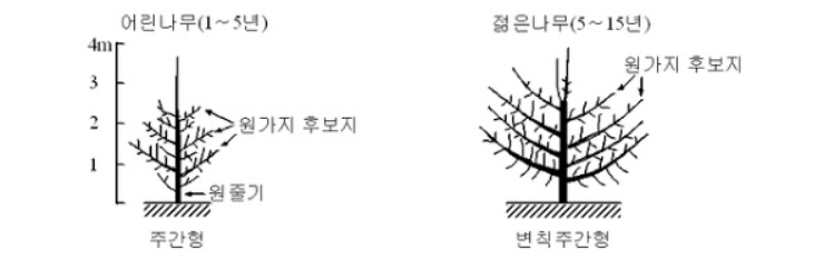 첫째 수형결정으로 나무의 모양을 어떻게 만들것인가를 판단하여야 한다.
