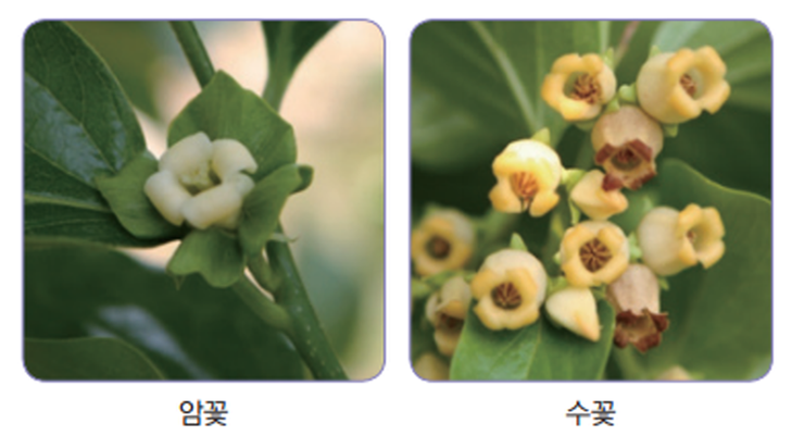감나무의 수분결실은 자가결실이 용이하나 품종이 따라서는 숯꽃이 전혀 없으므로 숯꽃이 있는 감나무를 약 15%이상의 본수를 식재한다.