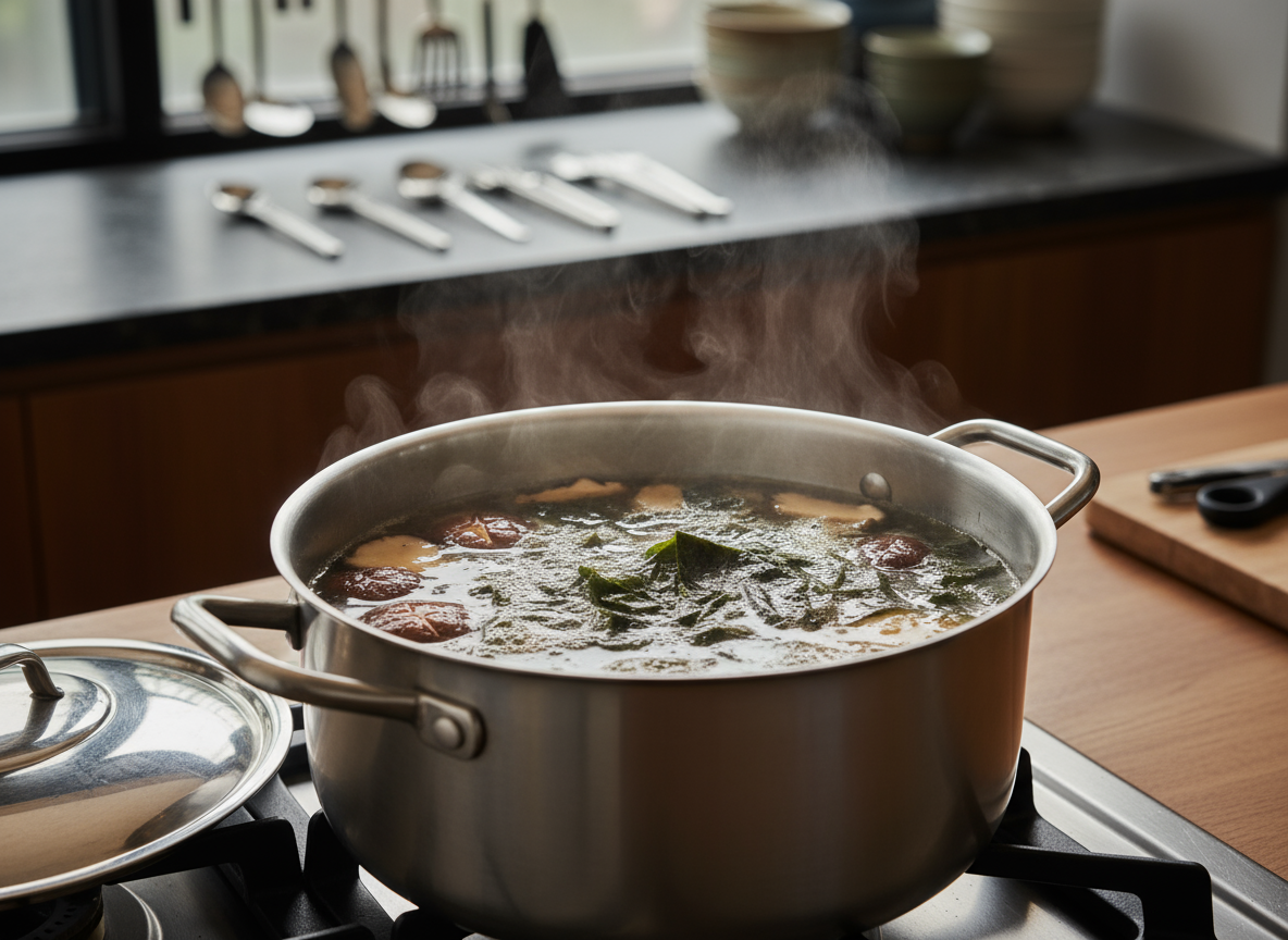 가장 먼저 할 일입니다. 맹물 대신 다시마, 건표고, 황태 머리, 무, 양파 껍질 등을 넣고 끓인 육수를 사용하는 것이 제 비법입니다. 육수 1.5~2L에 찹쌀가루 200g을 잘 풀어 끓여주세요. 풀은 반드시 완전히 차갑게 식혀야 합니다. 뜨거운 풀이 들어가면 김치가 빨리 시어버리고 풋내가 날 수 있어요.