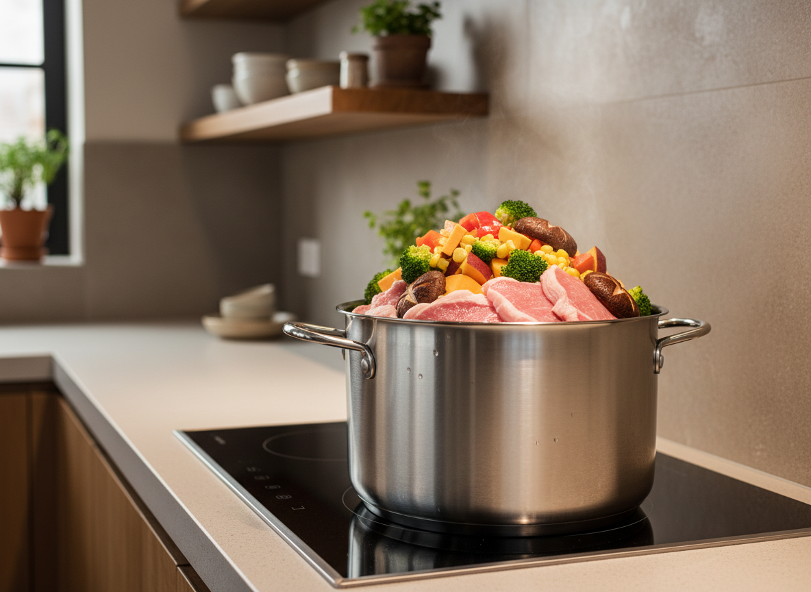 요즘 많은 분들이 선호하시는 무수분 수육 레시피를 소개해드릴게요. 물을 넣지 않고 채소와 과일의 수분만으로 삶아내는 방법인데, 영양 손실이 적고 고기가 훨씬 쫀득하고 촉촉합니다 🥕