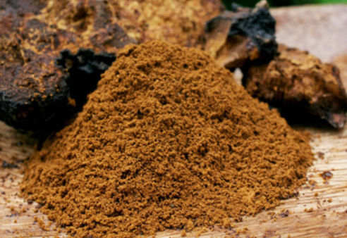 차가버섯의 물기가 완전히 제거 될 때까지 건조시키면 차가버섯 분말가루가 됩니다.