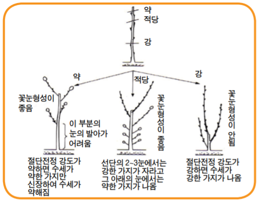 <절단 전정 강도에 따른 신초 반응>
