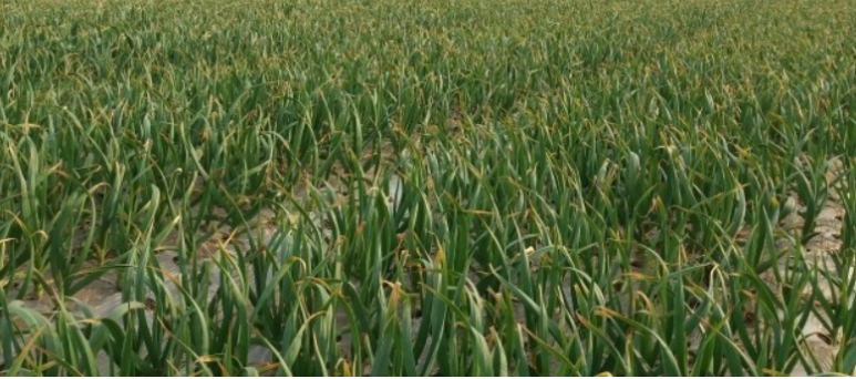 - 발생원인 : 생육중 마늘잎이나 줄기에 자색의 반점을 형성하고 심하며 잎전체가 고사