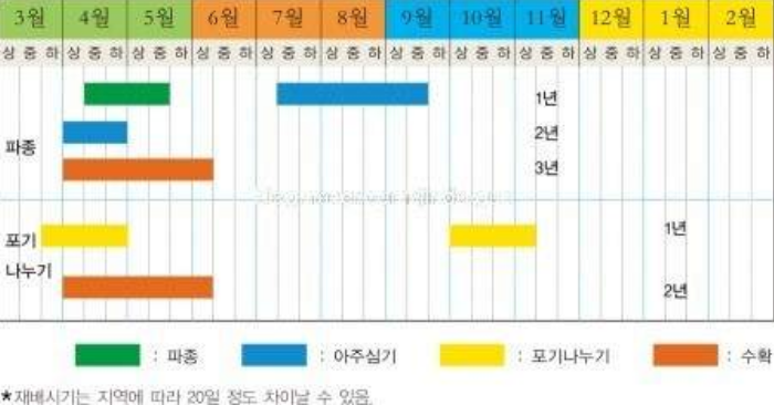 그러나 따뜻한 곳에서는 10월하순~11월상순경 지상부가 죽은 직후에 심기도 한다.