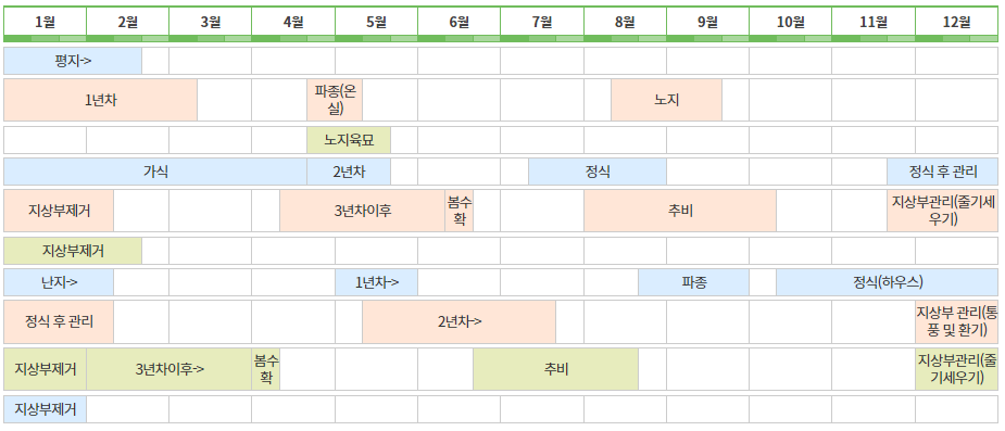 • 밀식을 피하고 웃자람하면 다발생하기 때문에 포장을 청결히 관리한다.