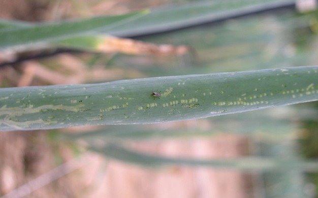잎을 둥그렇게 파먹고 파줄기의 둥근 잎속으로 들어가 방제가 쉽지 않은데, 자가 소비용으로 소량일때는 보이는대로 손으로 잡아도 잡아주면 됩니다. 방제 약제로는 "에이팜유제"등이 잘 듣습니다.