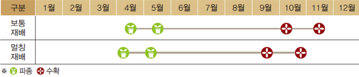 남부지방 파종(심는)시기: 4월 중순~ 5월 상순