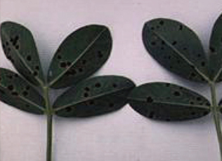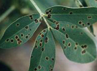 - 땅콩잎 아래에 흑갈색의 병반이 생겨 퍼진다.