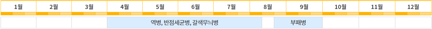 장마철이 되면 역병, 부패병, 반점세균병 등 여러 가지 병이 발생할 수 있다. 대개 다습하고 토양의 배수가 불량하면 발생하기 쉬운데 잎이 너무 무성하지 않도록 관리하는 것이 중요하고 장마기에 물이 고이지 않게 배수에 힘쓴다. 그 외 거세미 나방등의 유충에 의해 피해를 받기도 하며 민달팽이의 공격도 심하다. 텃밭에서는 약제방제보다 유인하여 죽이든가 벌레가 많이 붙은 잎은 제거한다.
