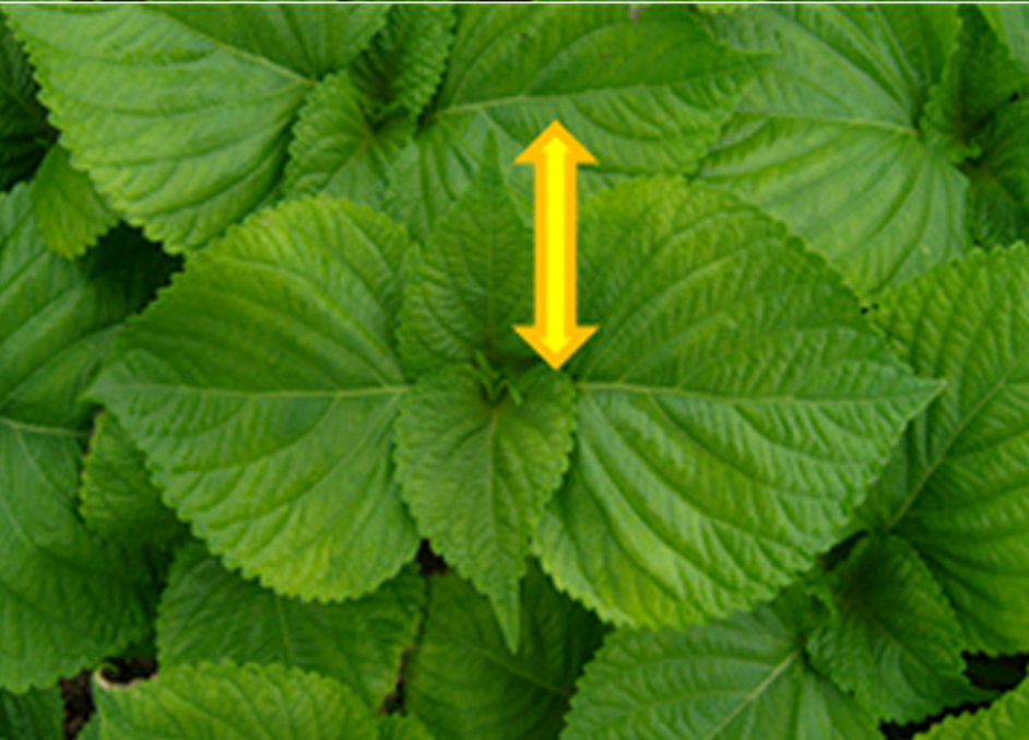 들깻잎은 잎이 손바닥 크기만큼 자랐을 때가 수확 적기다. 속잎의 크기가 너무 작을 때 잎을 따면 줄기에 상처를 입힐 수 있으므로, 속잎이 엄지손가락 크기 이상이 됐을 때 수확한다.